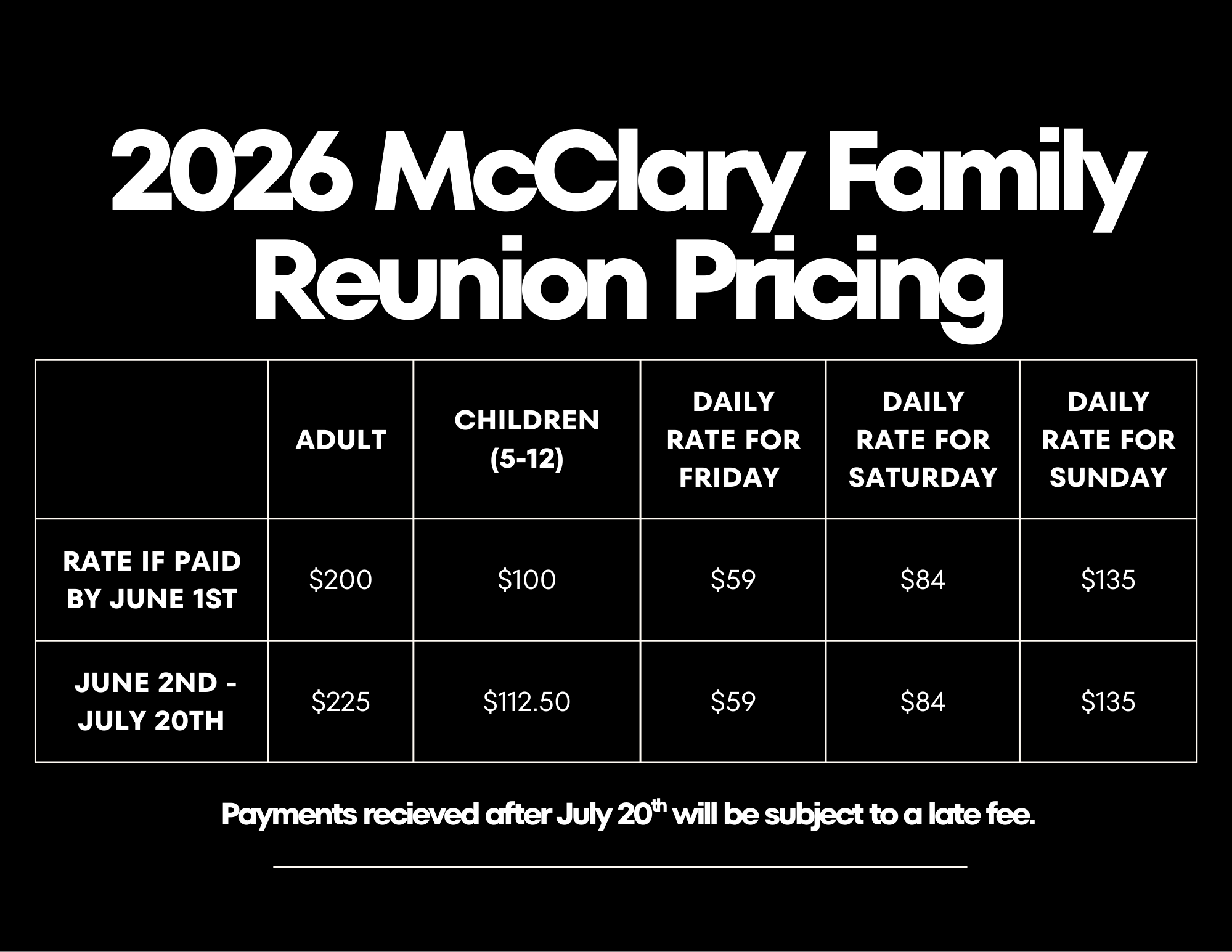 Please include the name of each person you are making a payment for and their shirt size when sending payments to rae.